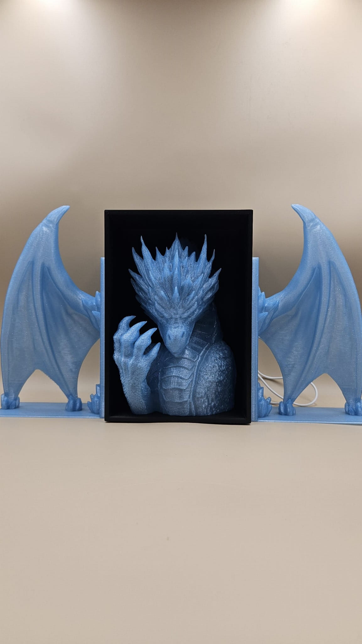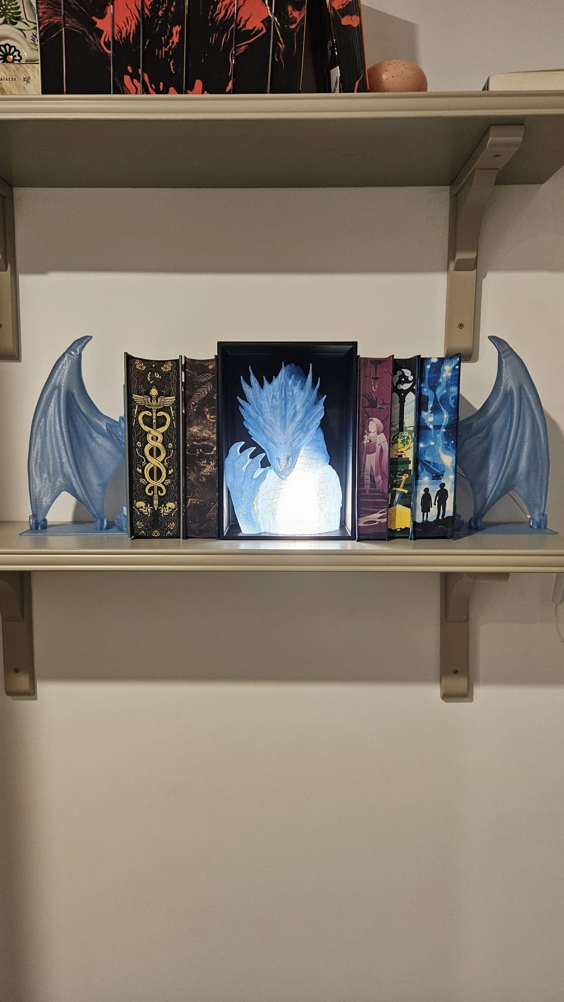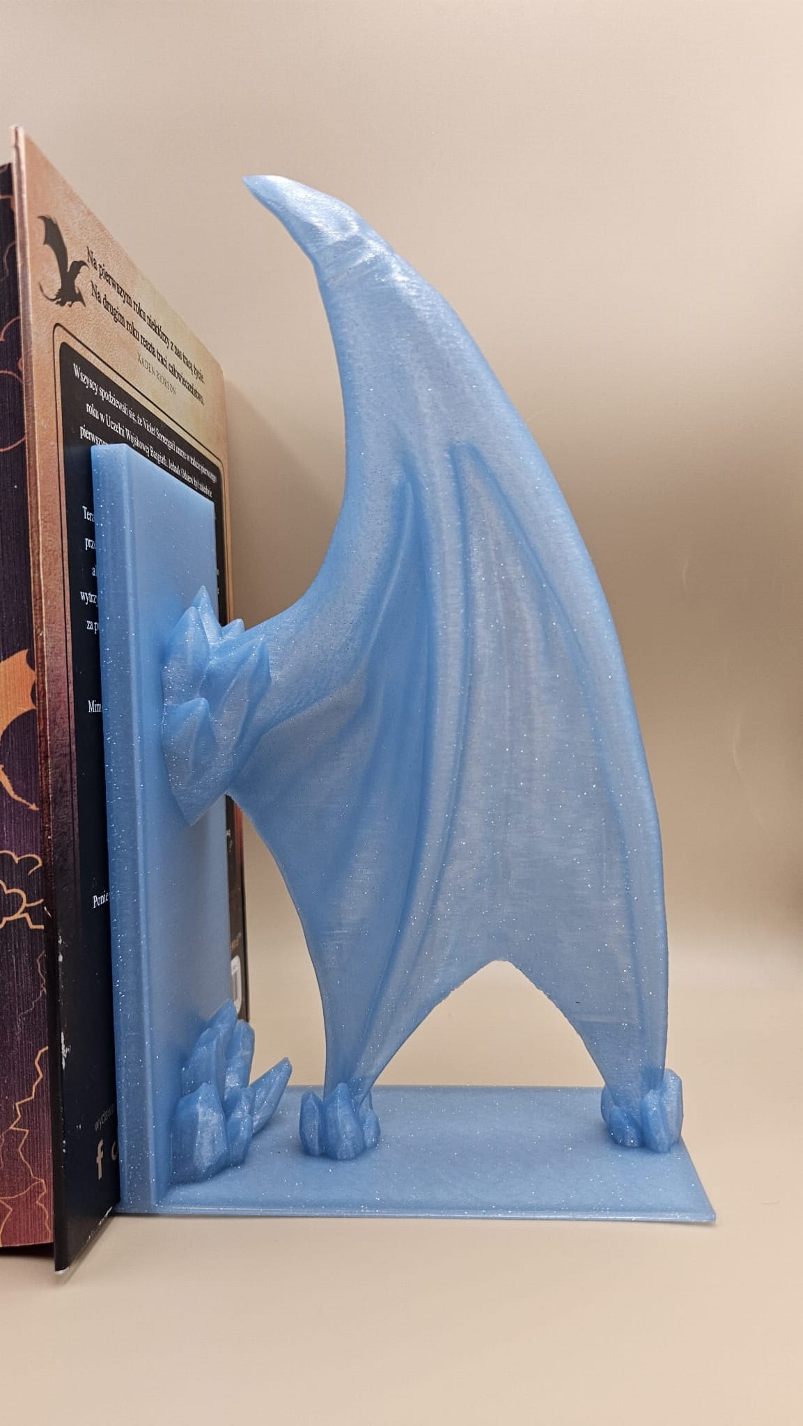 Lodowy Smok z LED– Głowa i Skrzydła podpórka na książki - (Book Nook)