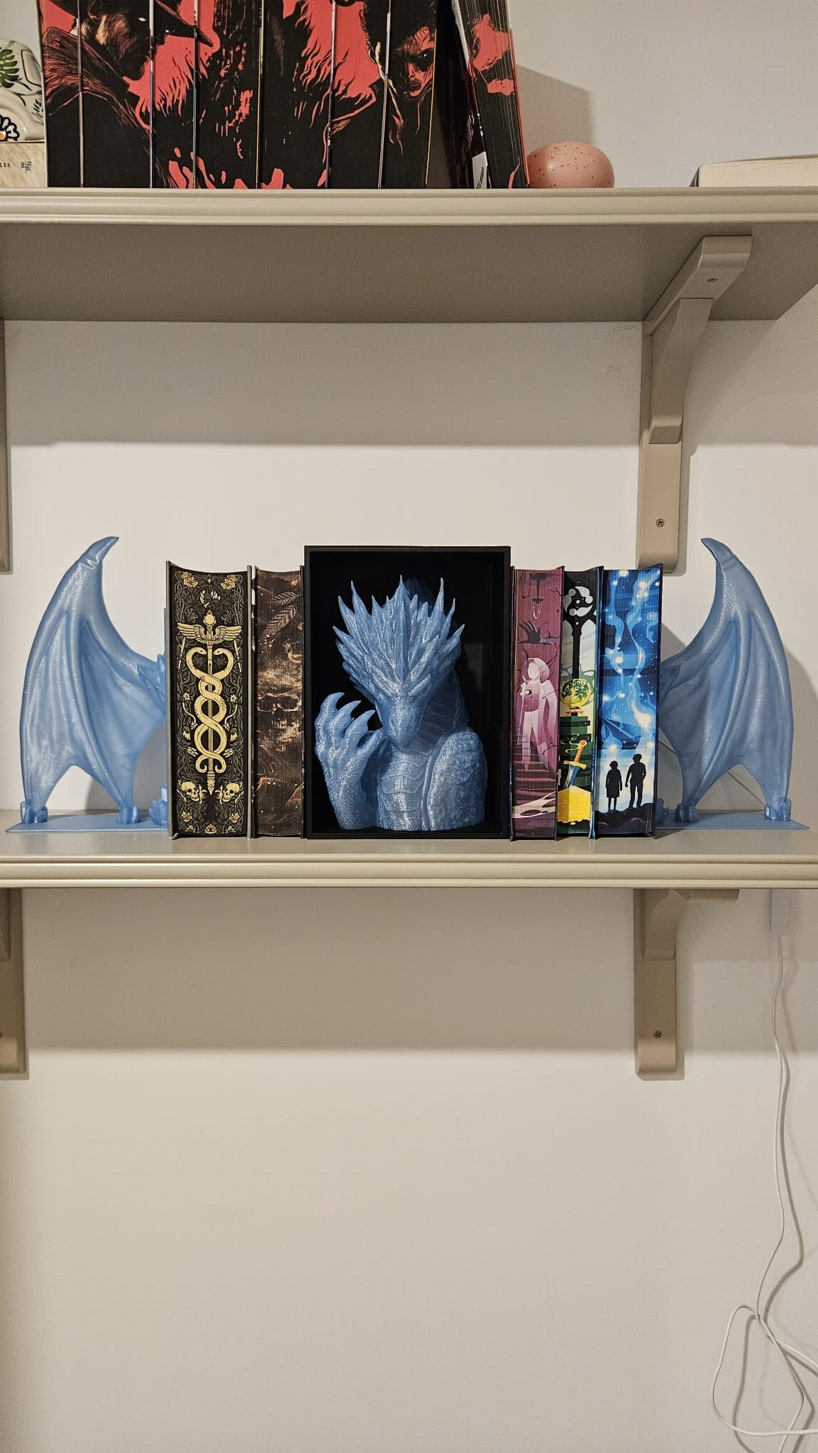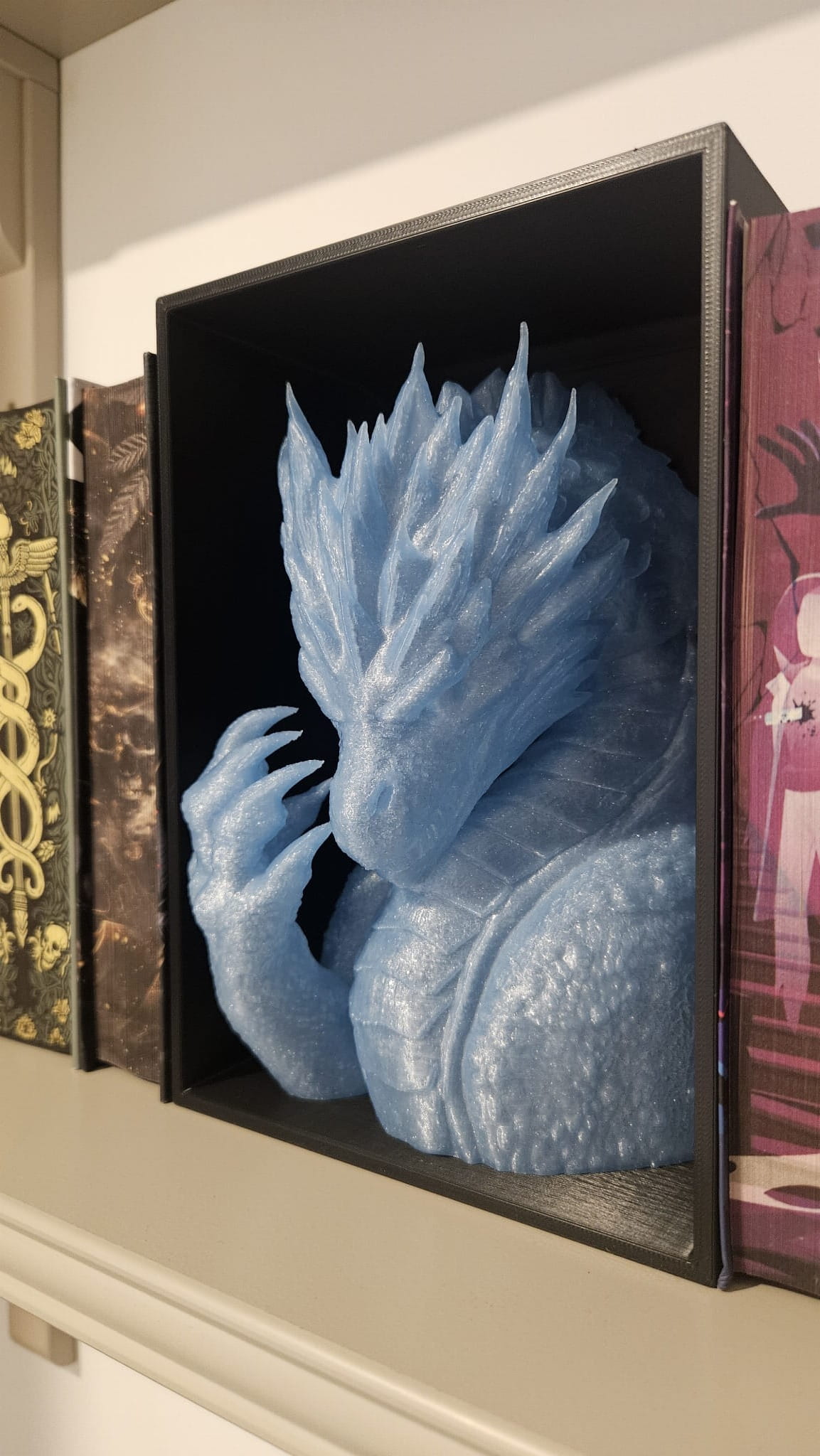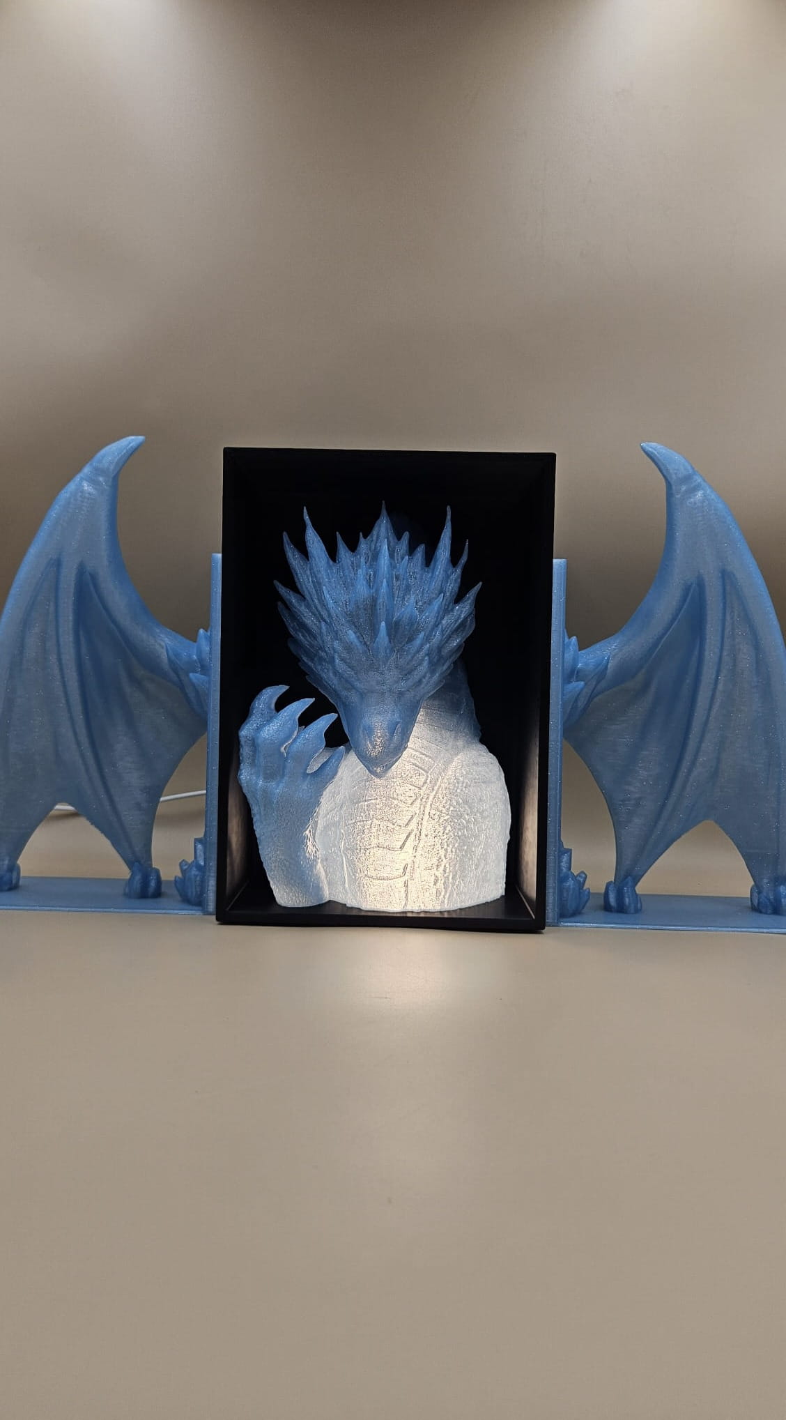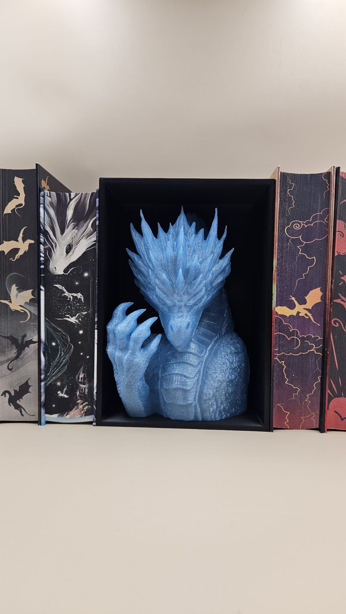 Lodowy Smok z LED– Głowa i Skrzydła podpórka na książki - (Book Nook)