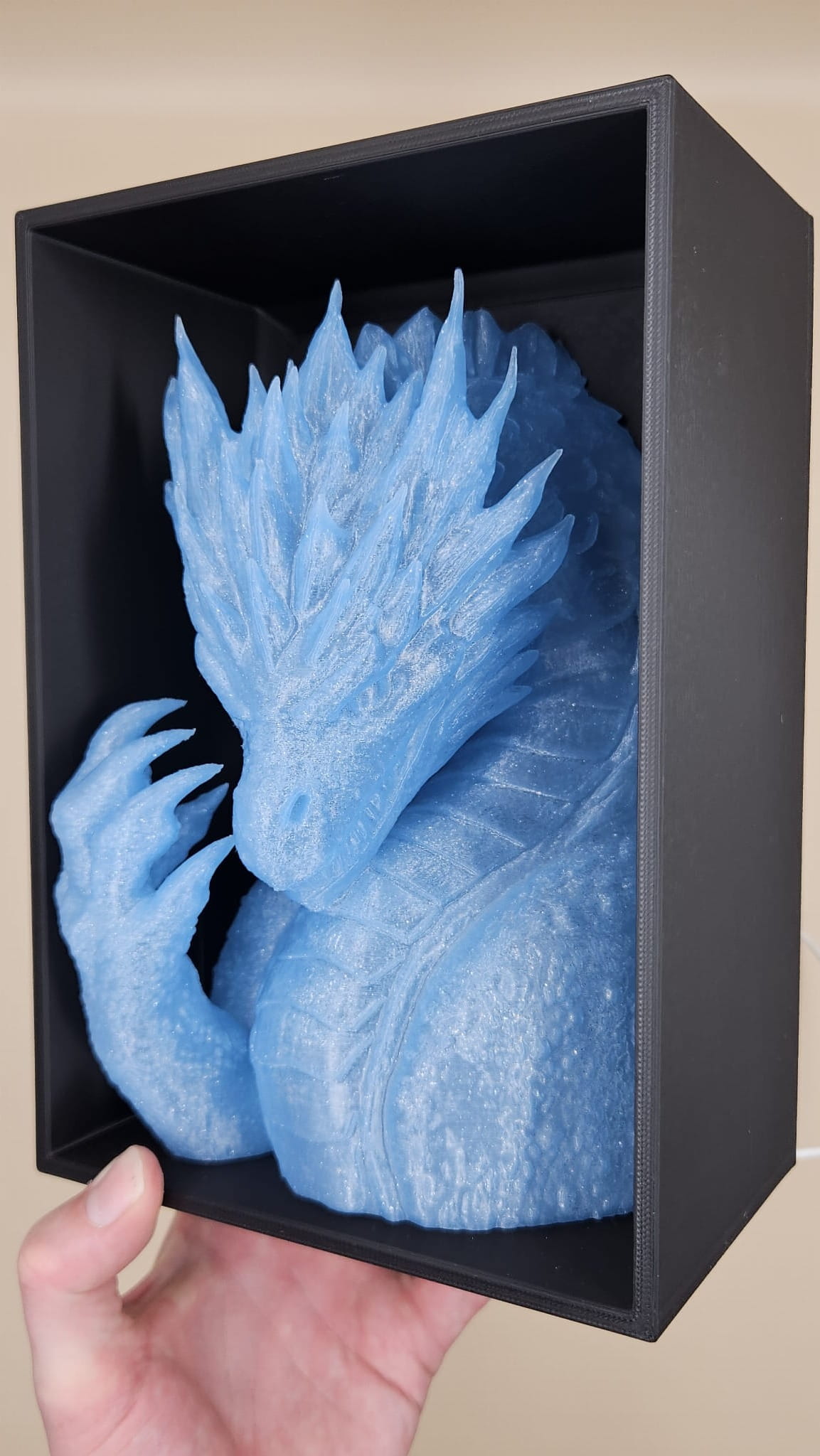Pełen zestaw: głowa + 2 skrzydła – efekt „smoka na półce”!